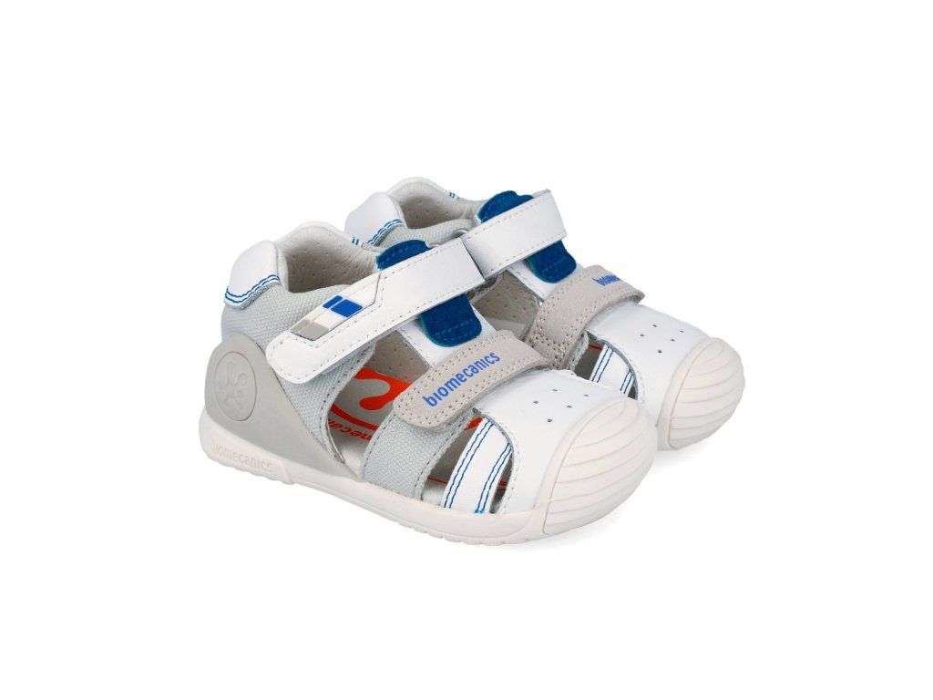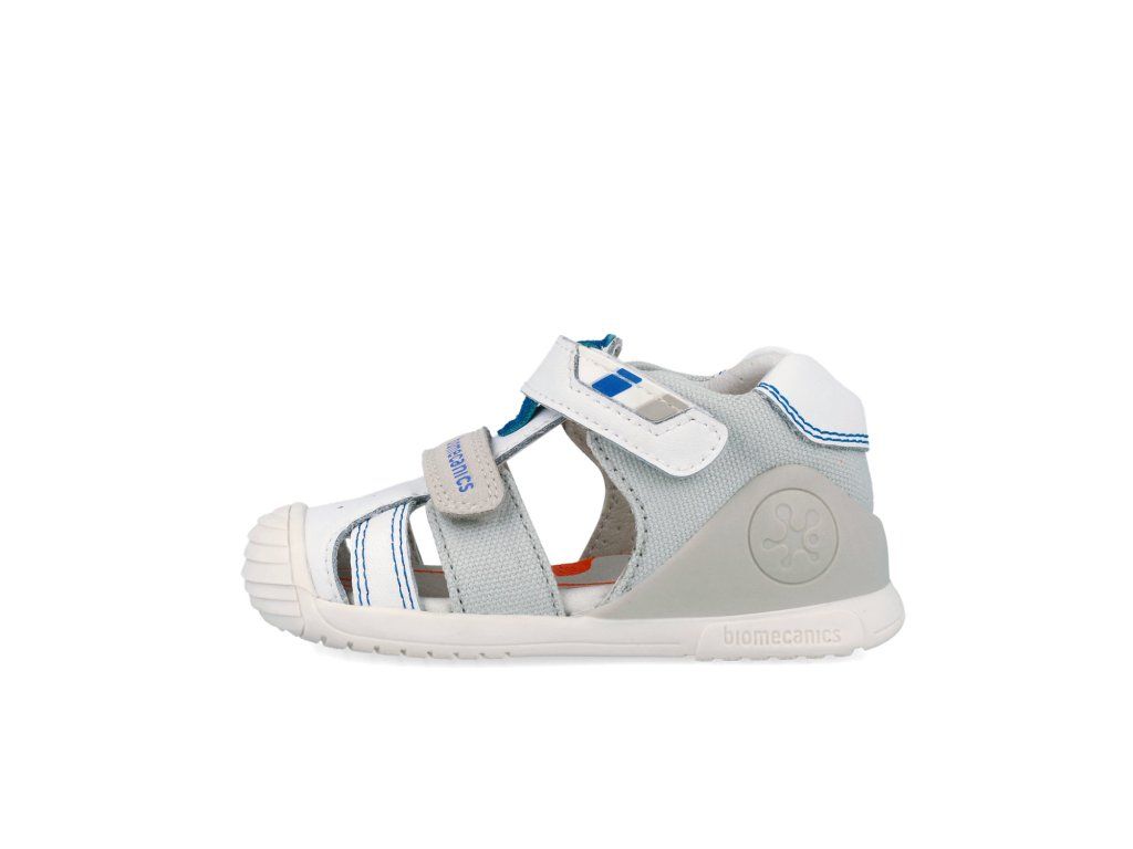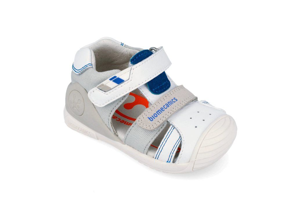 Dětské kotníkové sandály Biomecanics 262123-B050 Napa Blanco jsou vhodné pro teplé dny. Sandálky španělské značky Biomecanics s ergonomickým designem a střihem, jsou jako stvořené pro začínající chodce a děti s baculatějšími nožkami.